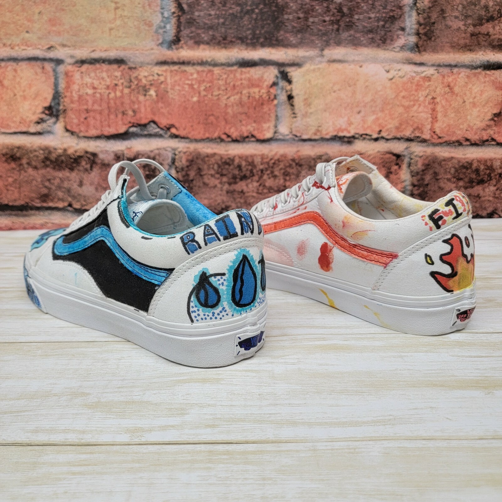 Vans White Custom Painted Sneakers Rain Drop And Fire Mens 9 Womens 7 Slip On Ebay